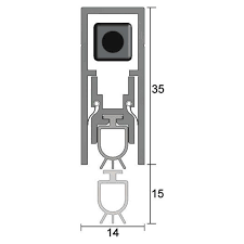 Mounted into a 35mm deep x 15mm wide machined groove, the seal is screw fixed back into the door stiles via stainless steel end plates, holding the seal in place. The seal operates automatically by pressure against the door jamb on its adjustable strike button. The seal contains a high-efficiency mechanism to assist with the closing force requirements detailed in AS1428/1 (Design for Access and Mobility).
